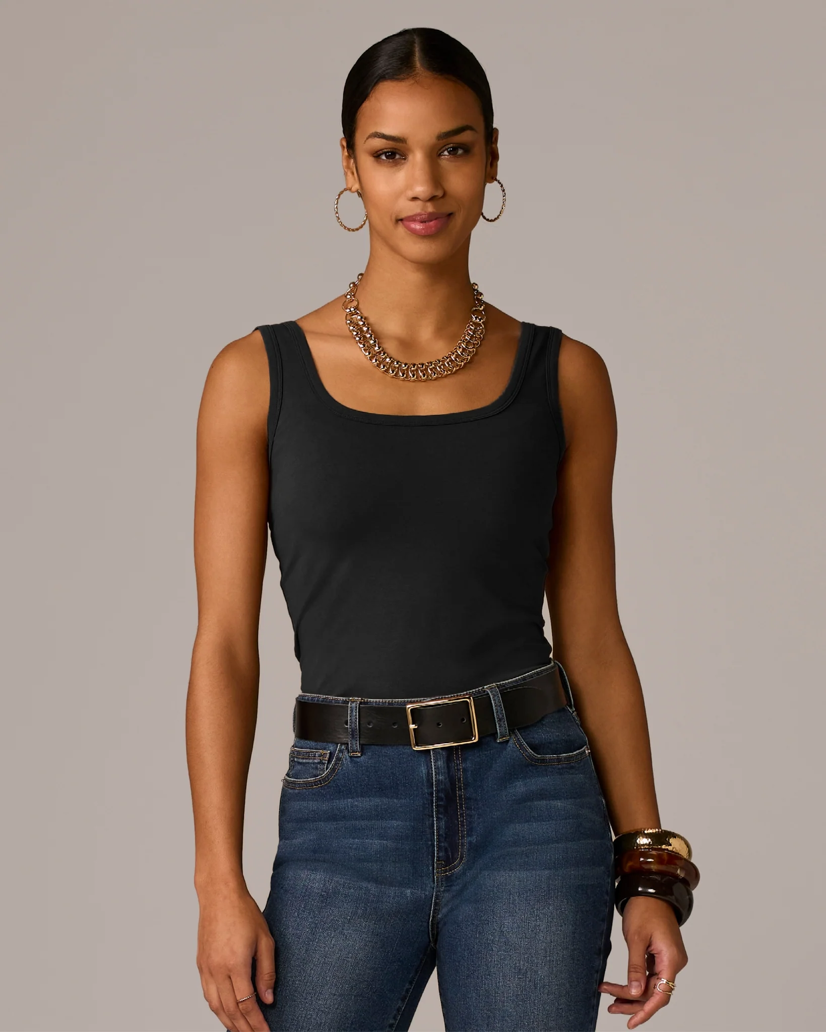 The So Sexy Square Neck Knit Top is designed to highlight your shape with clean lines and comfortable stretch. The cotton-rich knit feels soft and breathable while gently hugging the body for a flattering, curve-loving fit. A square neckline creates a modern frame across the collarbone, while the sleeveless silhouette keeps the look sleek and easy to layer. Style it with denim, shorts, or layered under jackets for an easy look that always feels effortless and comfortable.